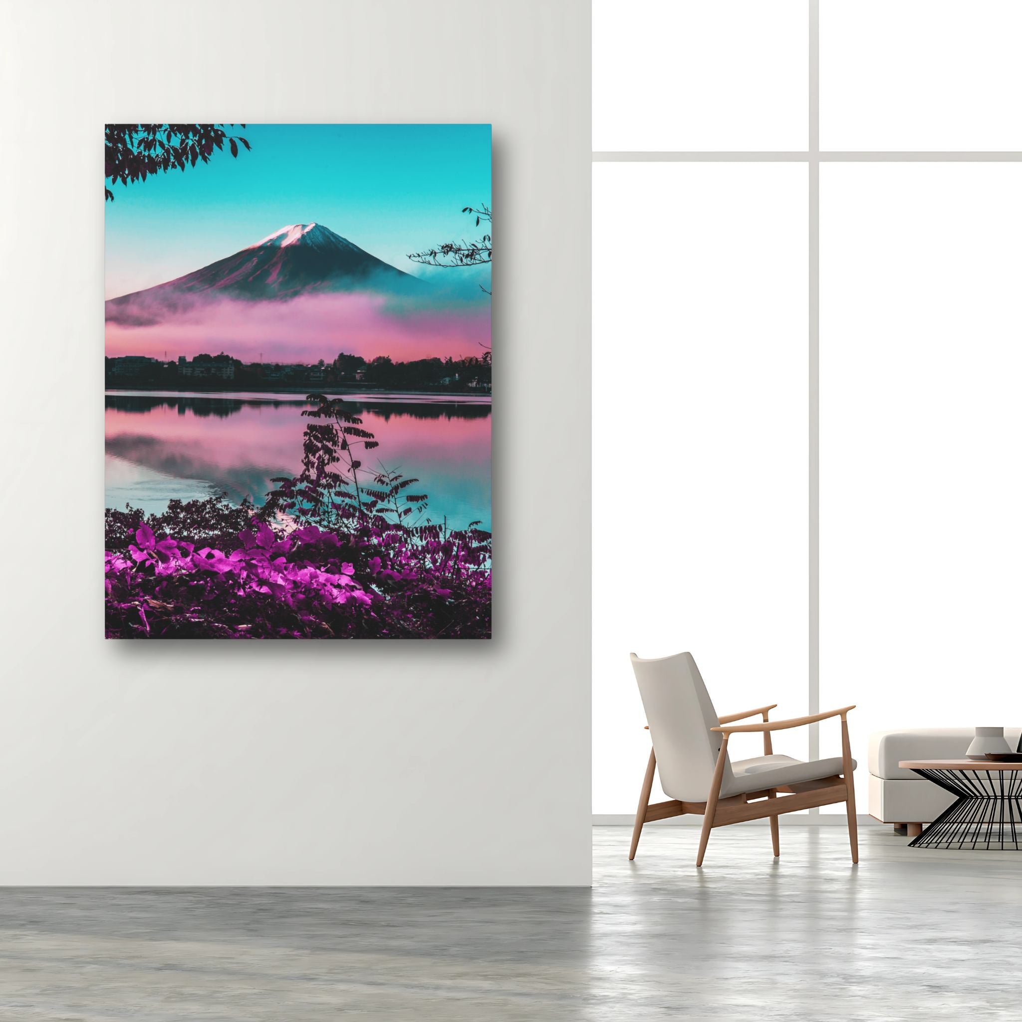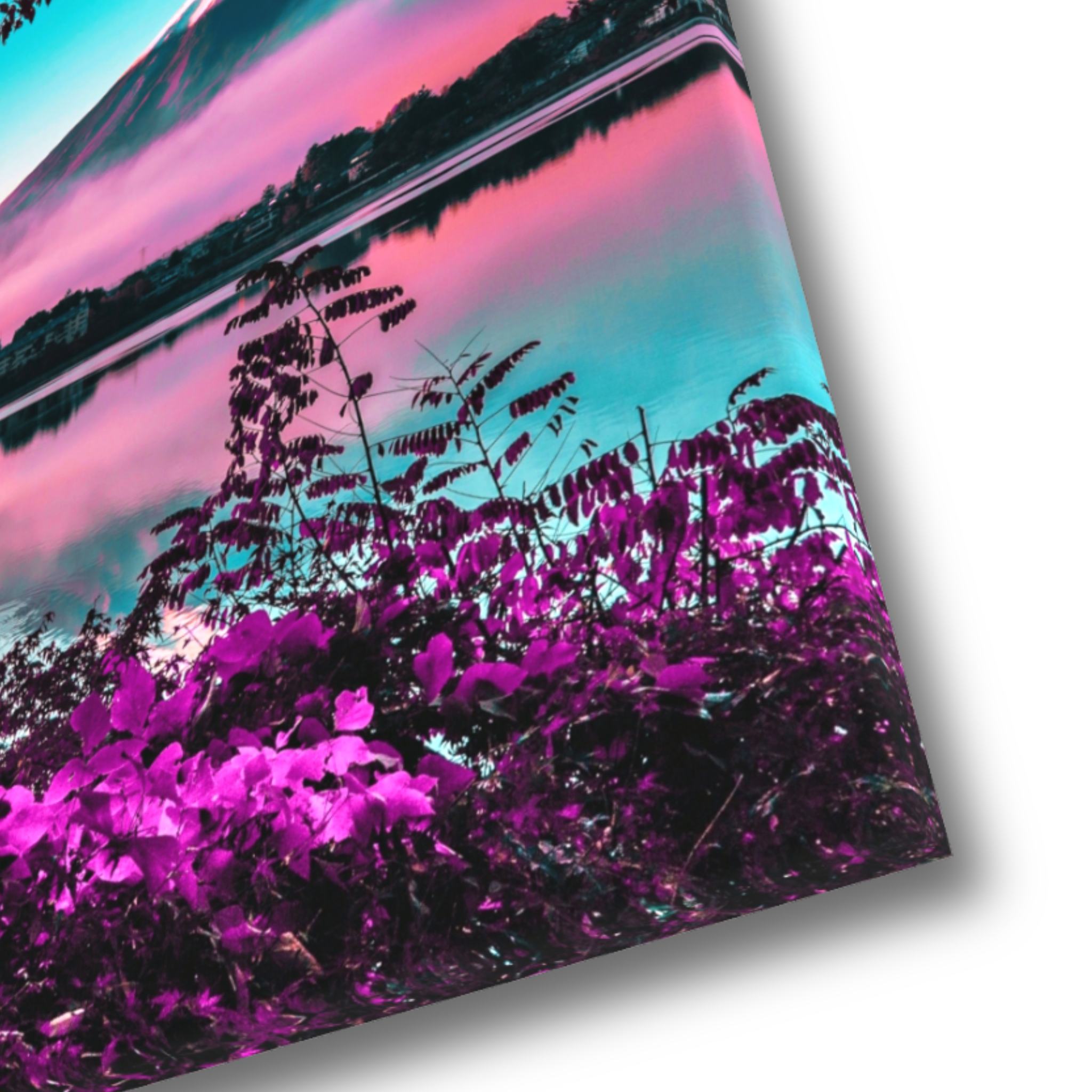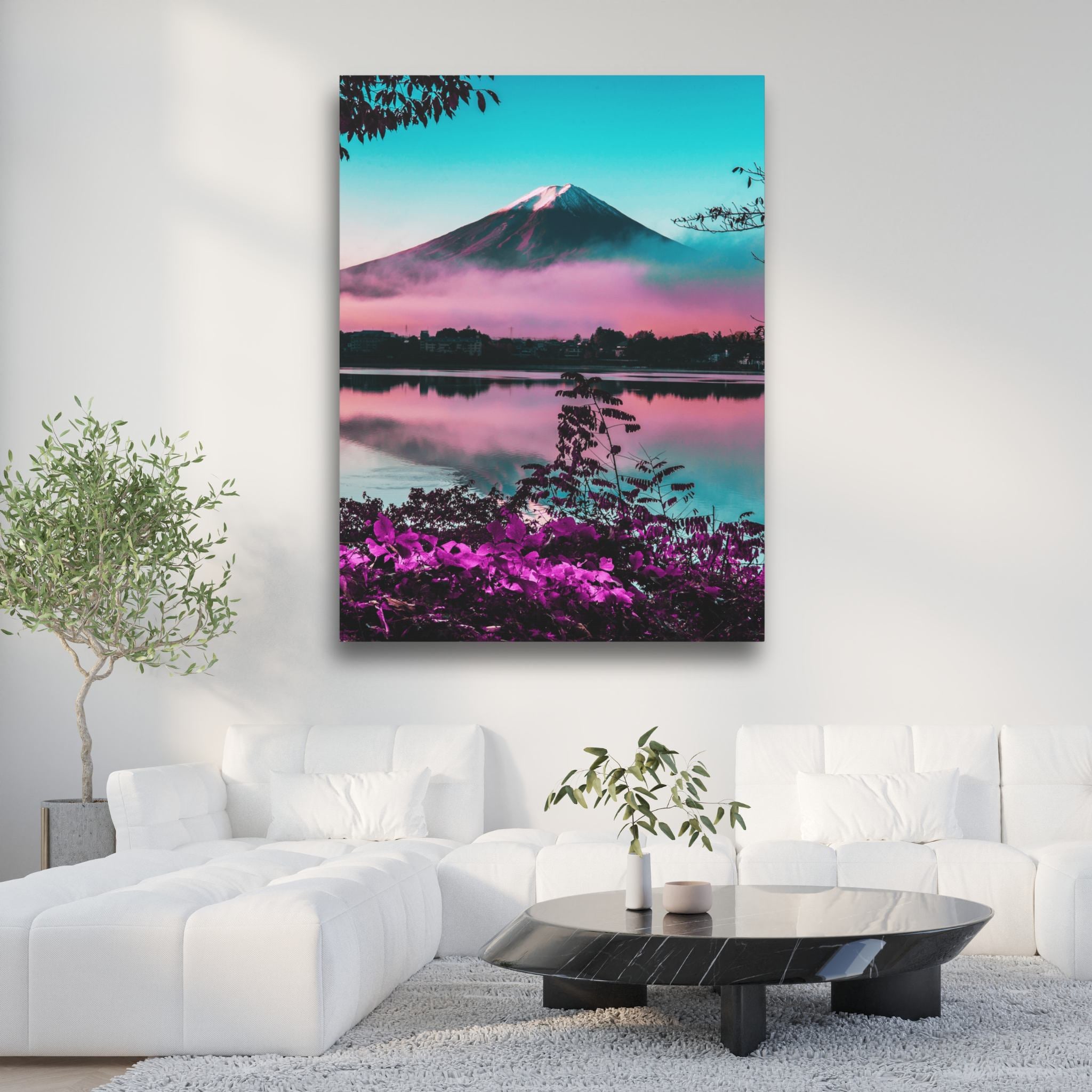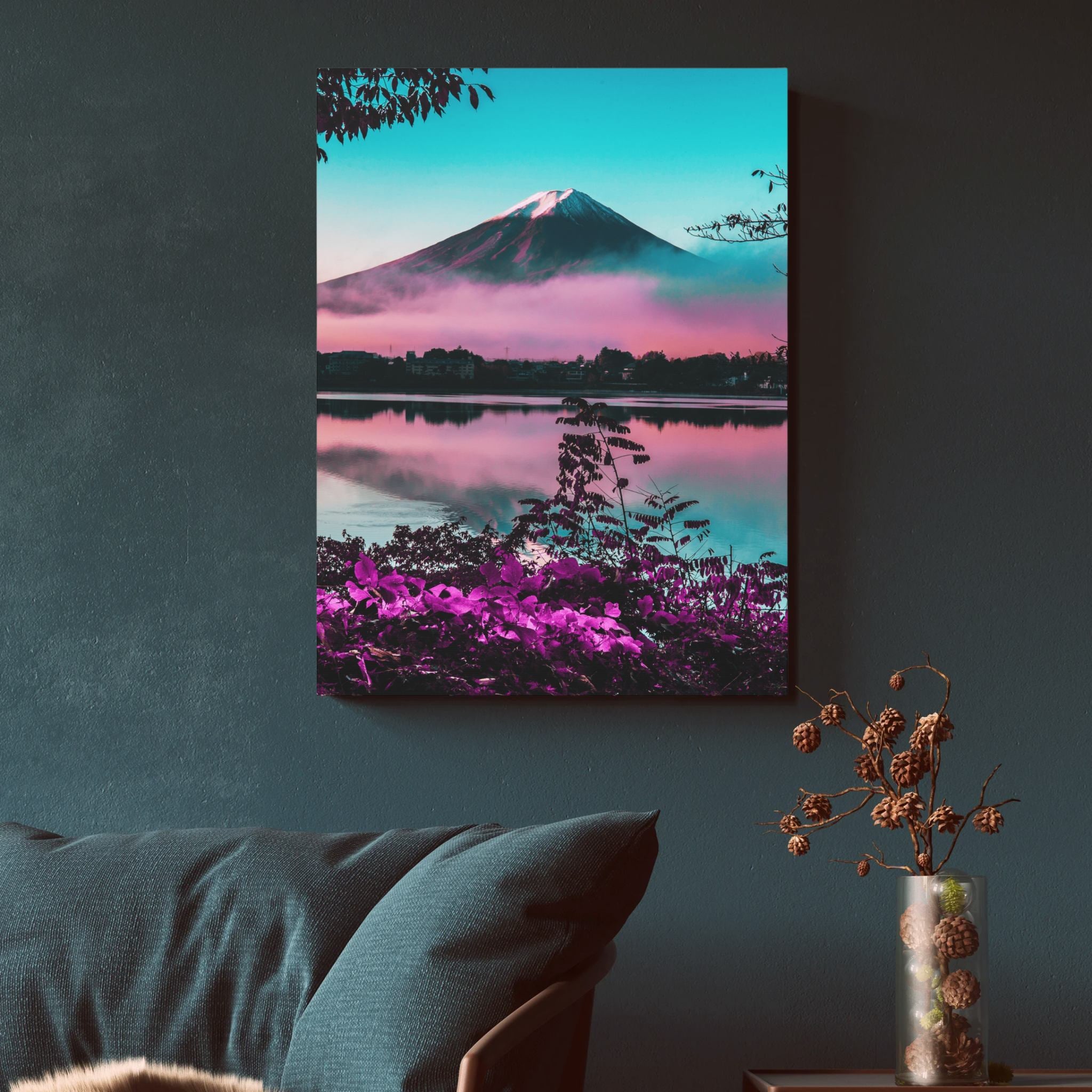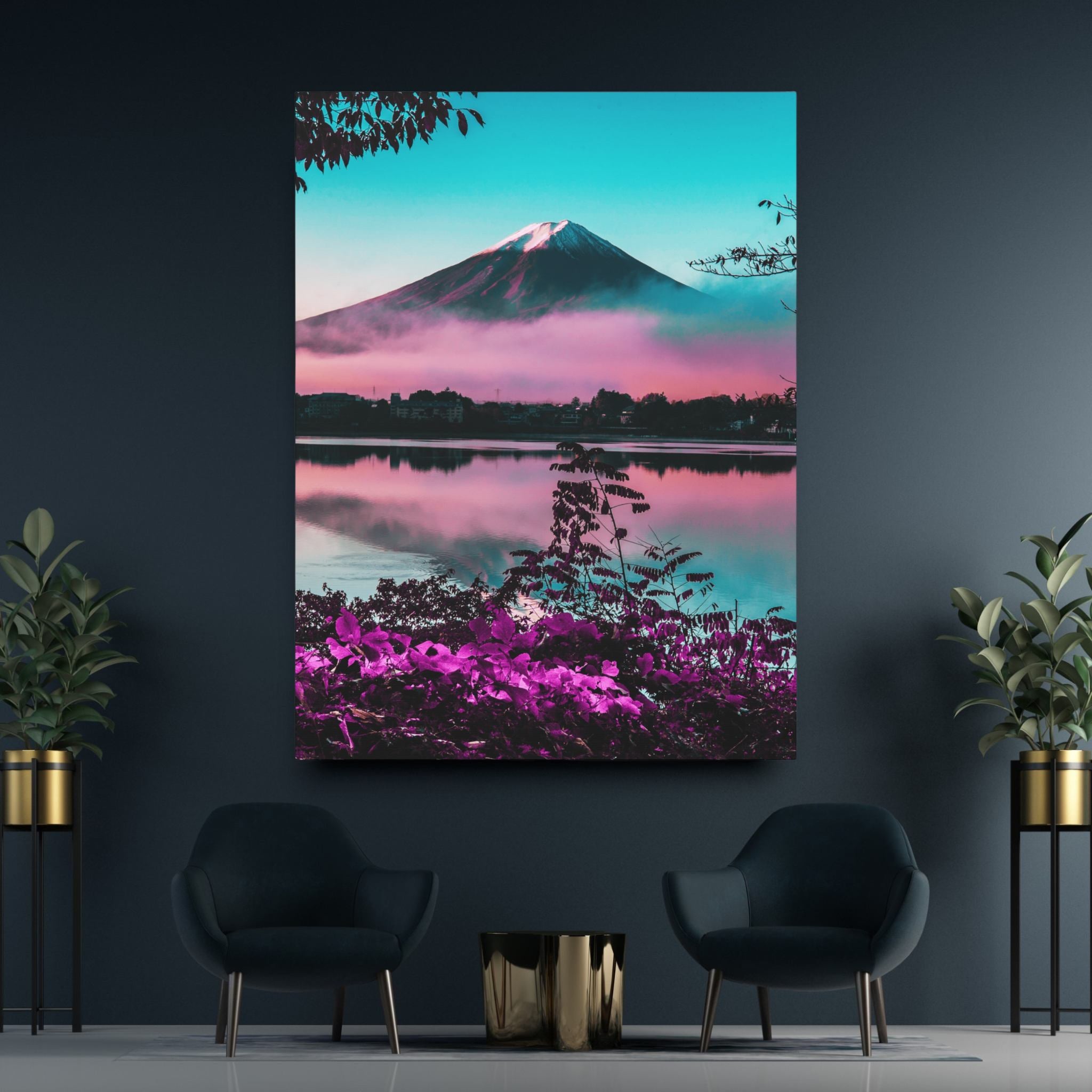 This beautiful Misty Mountains Canvas wall art has nature all around it, take yourself into the neon flowers, blue rivers, and the tall mountains. Made with attractive & vibrant colors that will brighten up any living room or decor space.